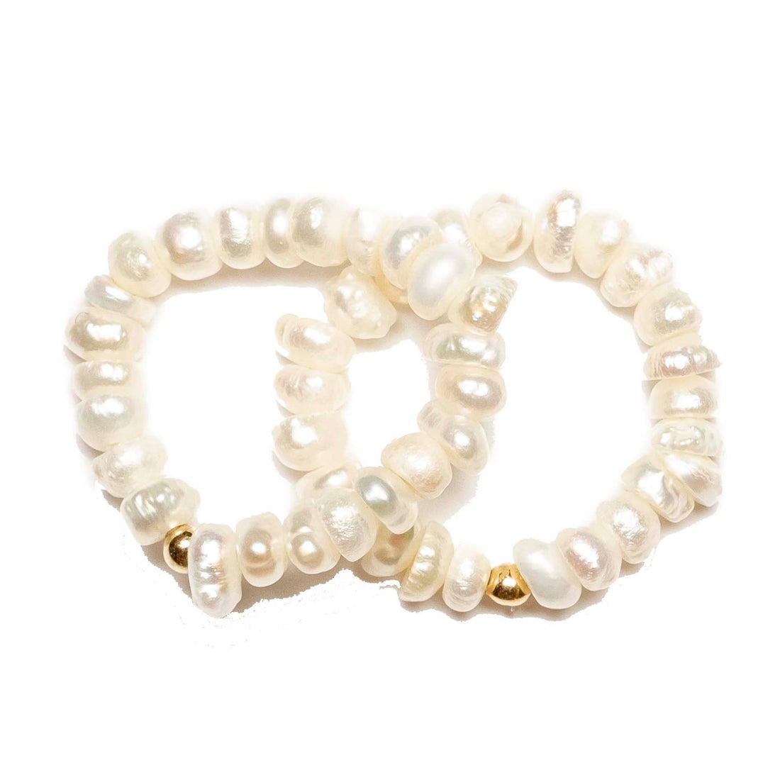 Made of fresh water pearls with one gold bead in between. Every jewelry can vary slightly...