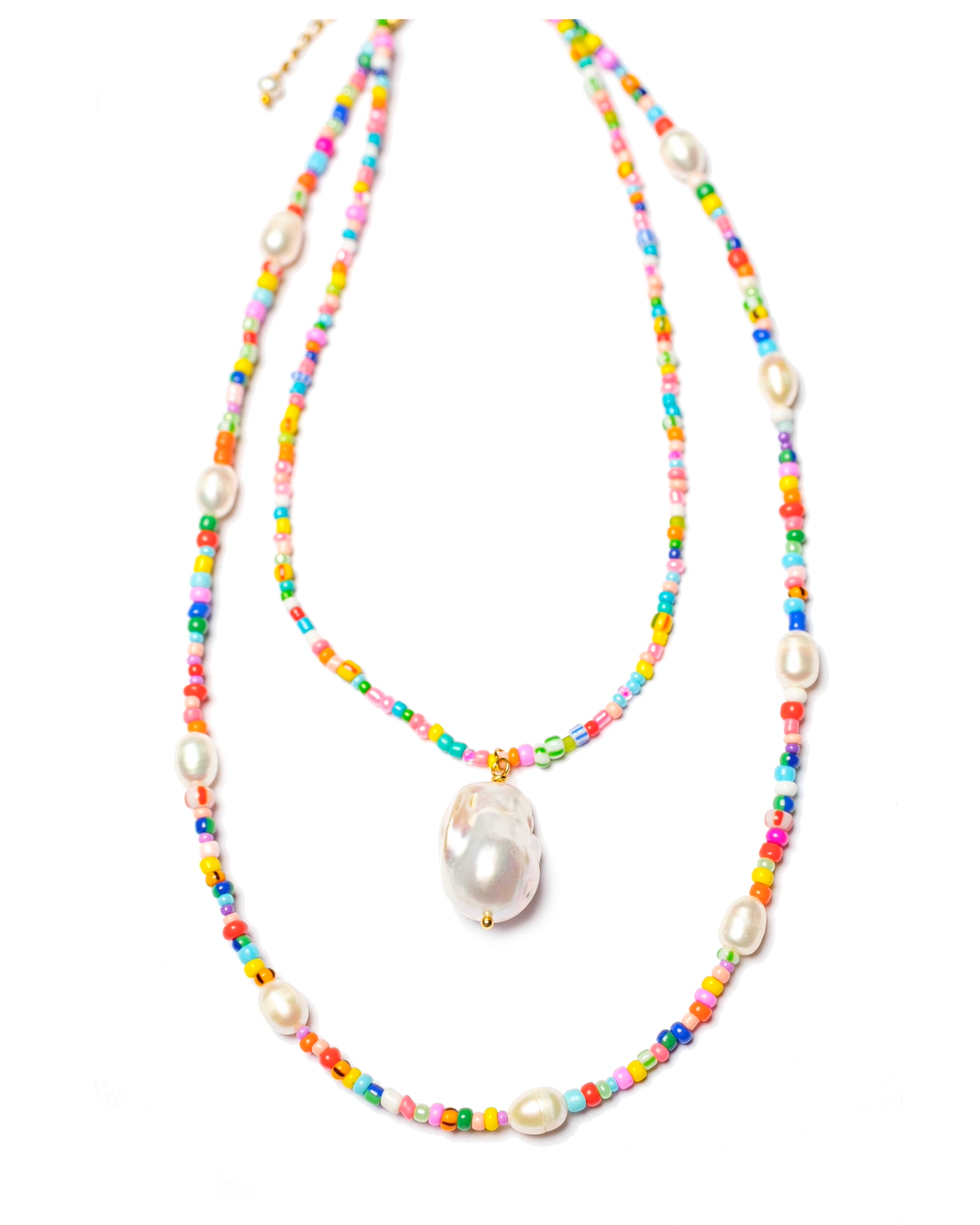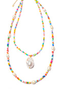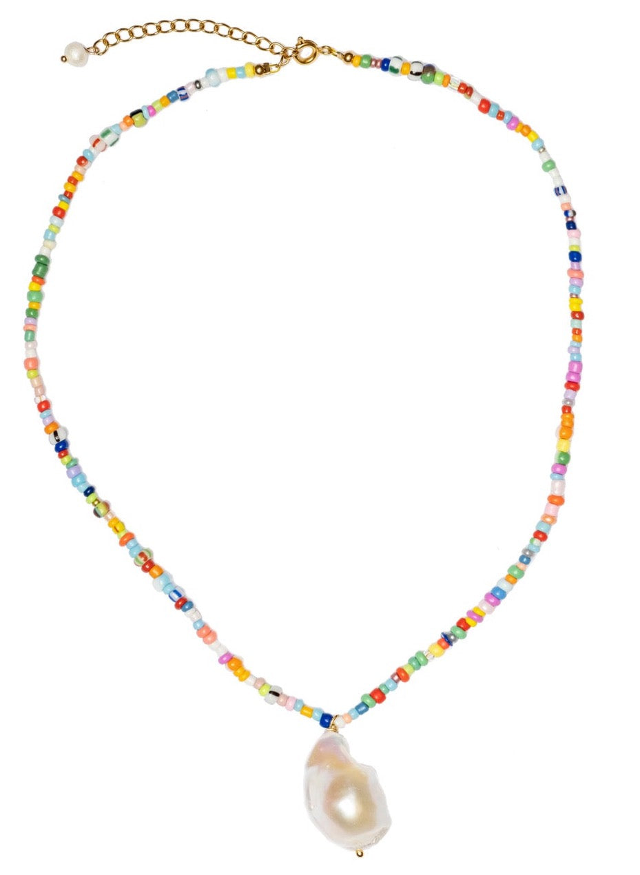Made of : 18k gold plating brass, colorful beads and one big luxury Baroque pearl.