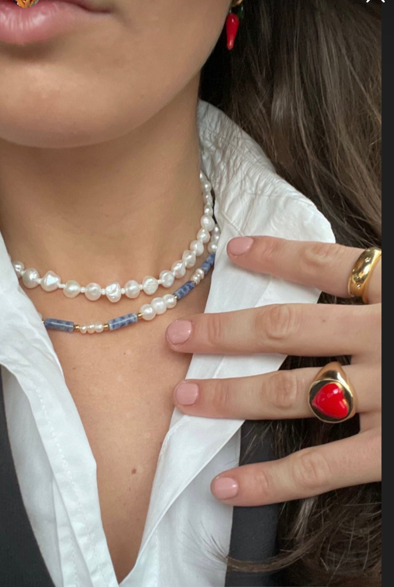 Made of : 18k gold plating, freshwater pearls and natural stones.