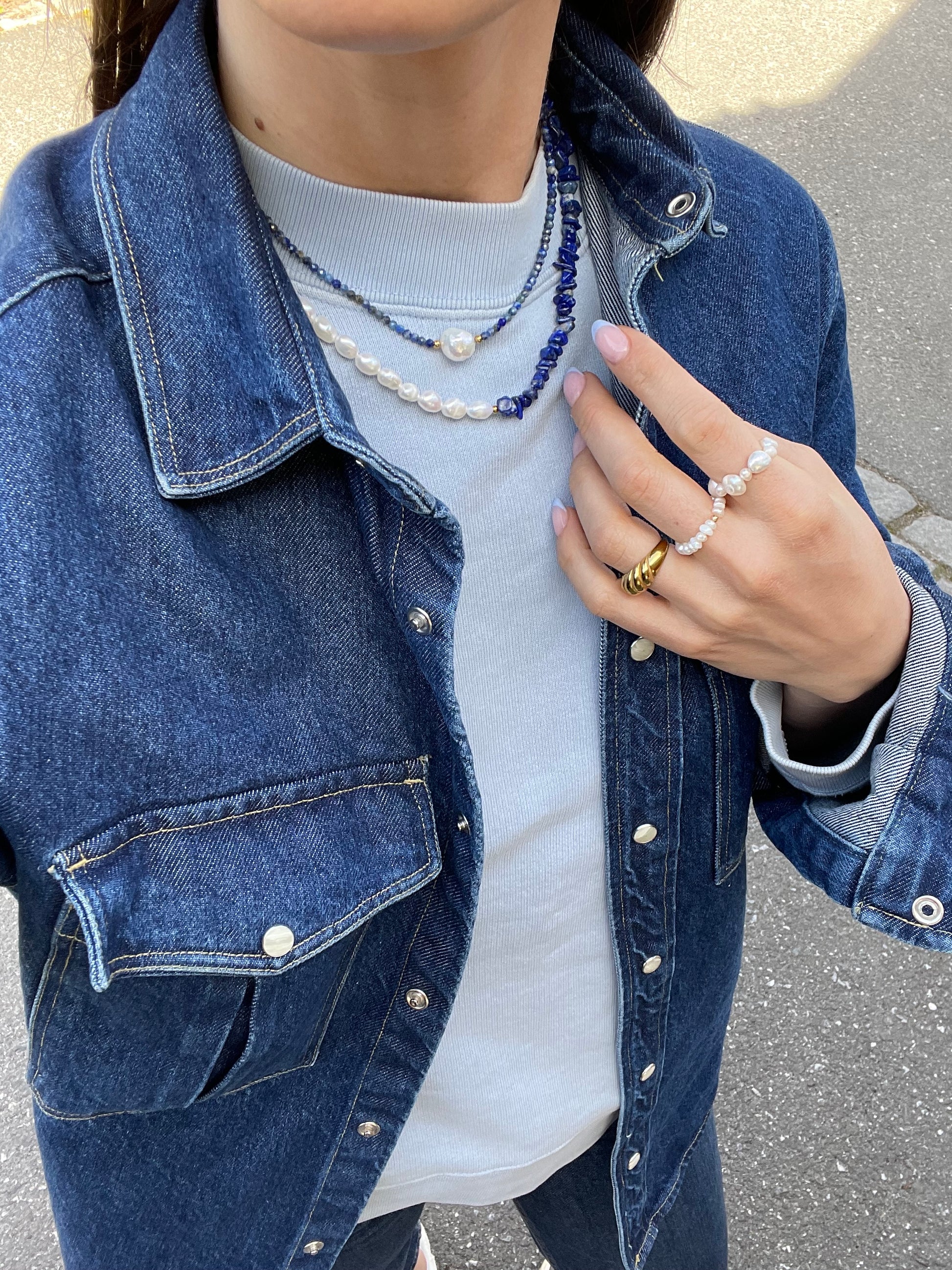 Made of: 18k gold plating, freshwater pearl and lazuli stones