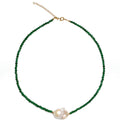 Made of: The exclusive Baroque pearl, 18k gold plating & green agate stones