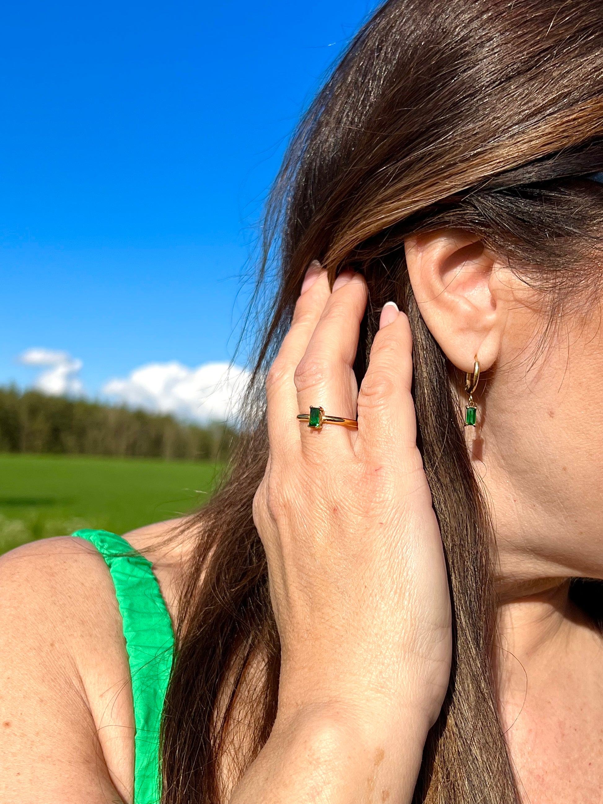 Made of: 18k gold plated Stainlees steel and a green zircon stone