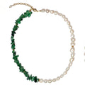 Made of: 18 karat gold-plated brass, green colored natural stones and freshwater pearls.