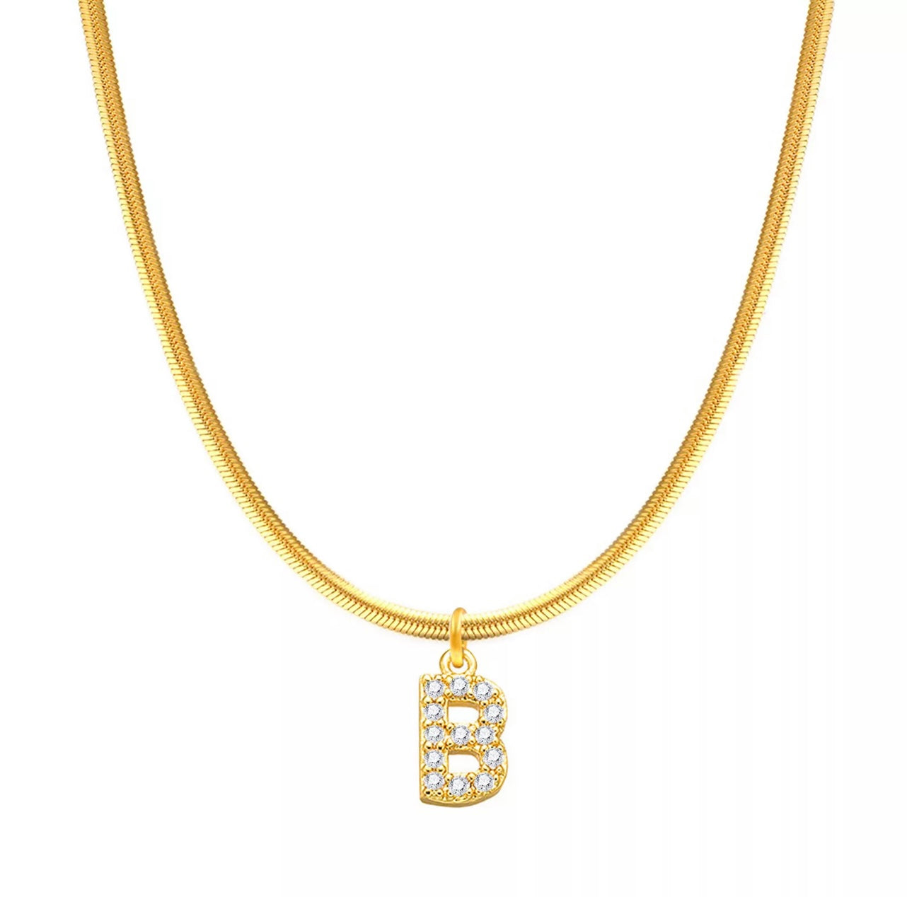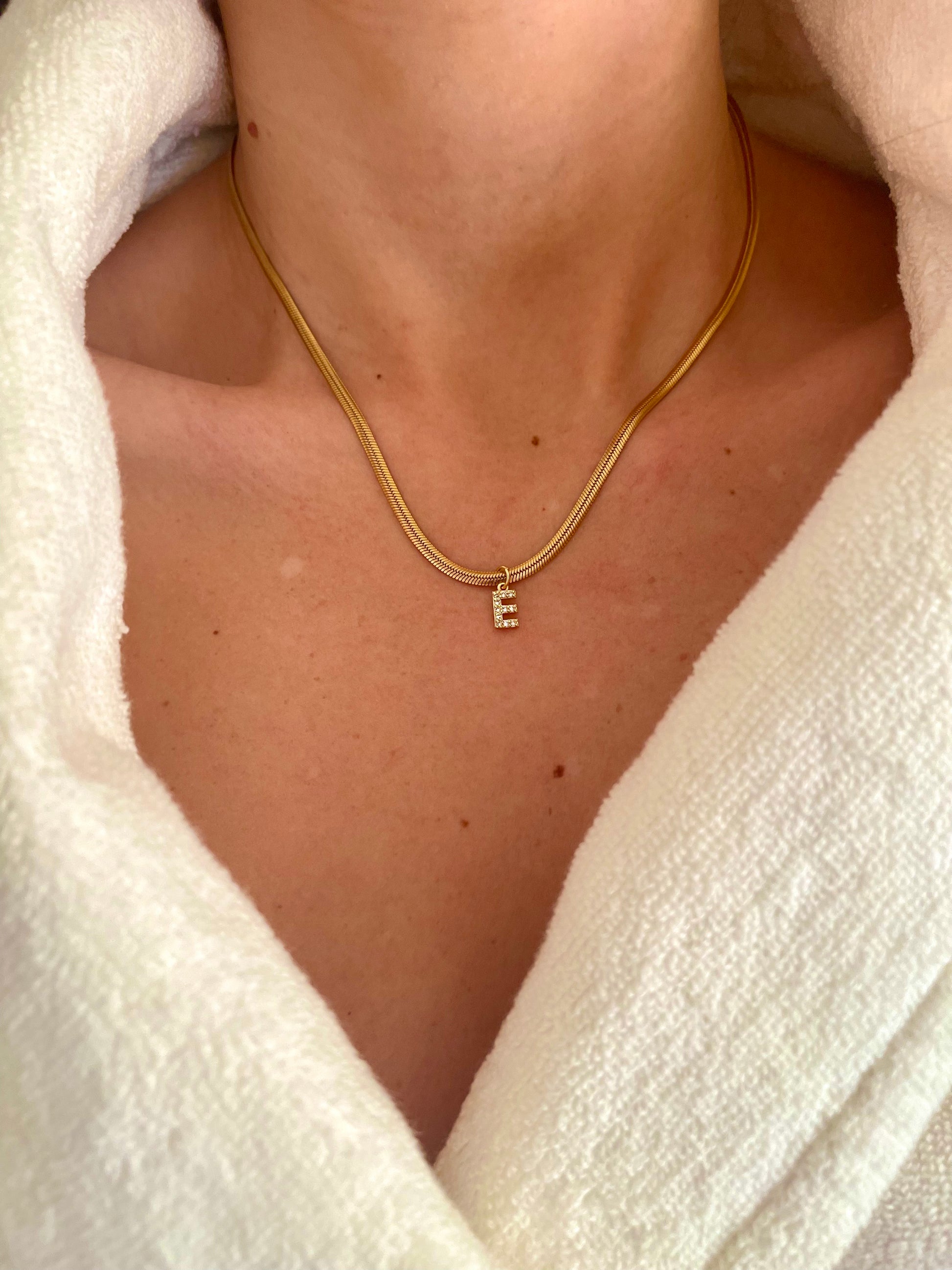 The Crystal Letter Necklace is the perfect personal detail for your neck or for a loved one. The 18 karat gold-plating snake chain and the letter made of sparkling zircon stones, makes the necklace very personal with a luxury touch.