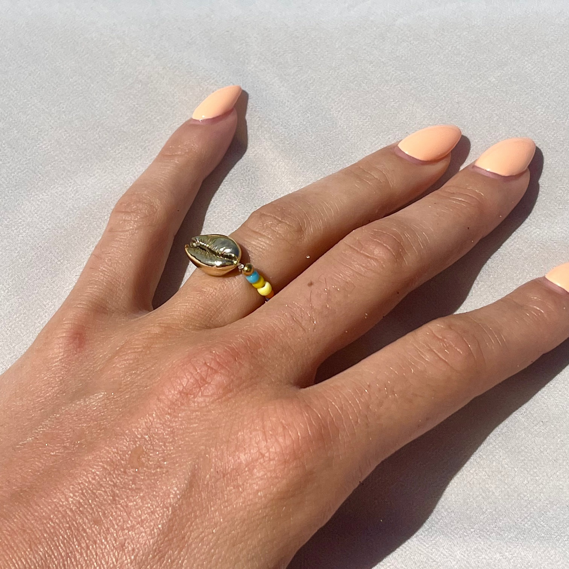 Made of: 18k freshwater pearls, colorful beads and plastic gold shell