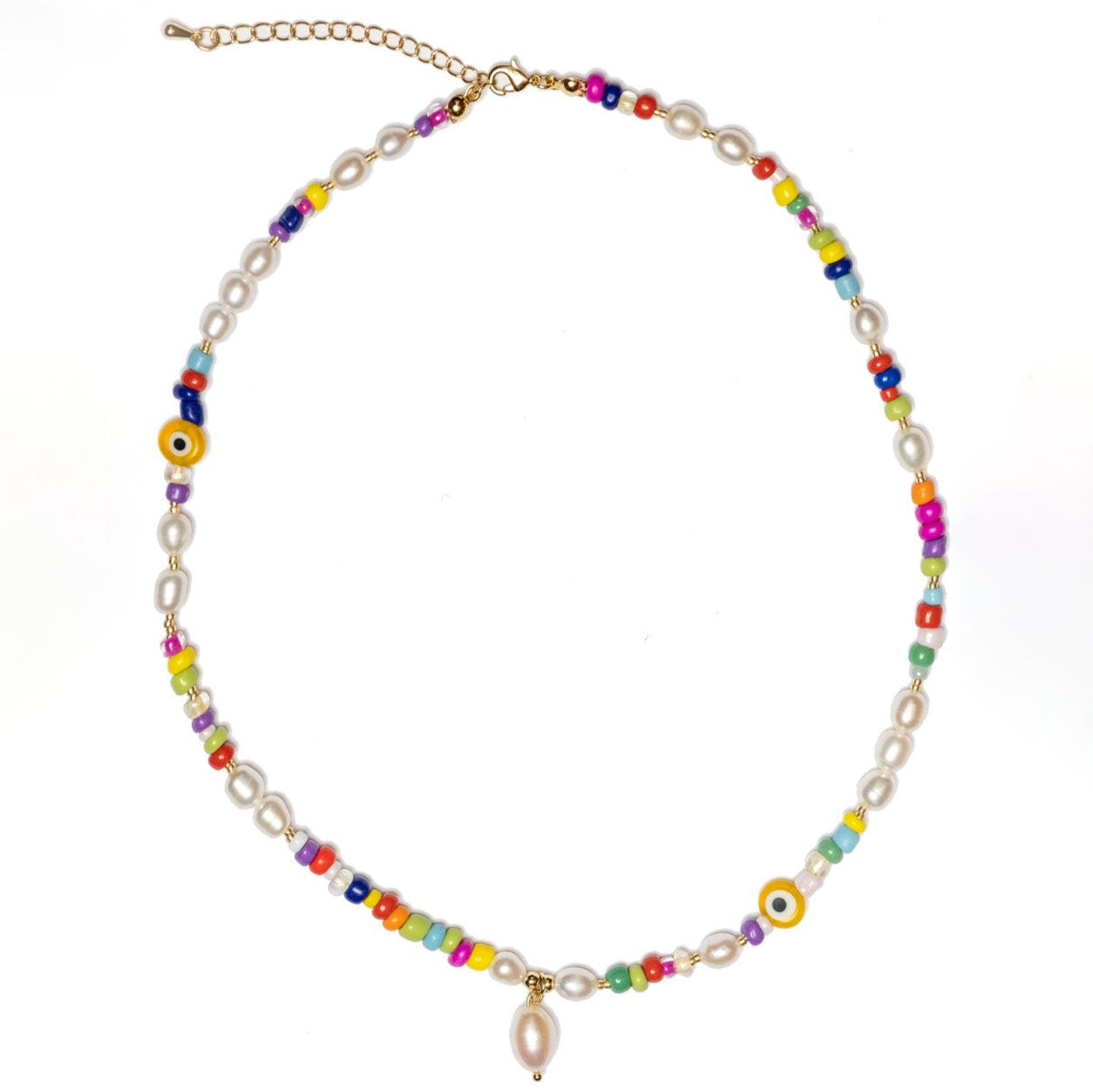 Made of: a mix of freshwater pearls, natural stones and colorful beads.