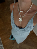Made of freshwater pearls and a natural shel. This laid-back statement piece is giving ocean vibes, effortless style, and a "one of a kind" feeling.