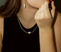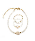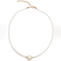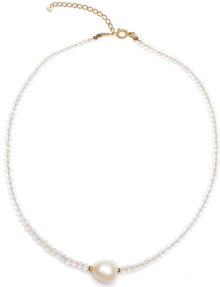 Made of: white crystals, one freshwater pearl and 18k gold plated chain