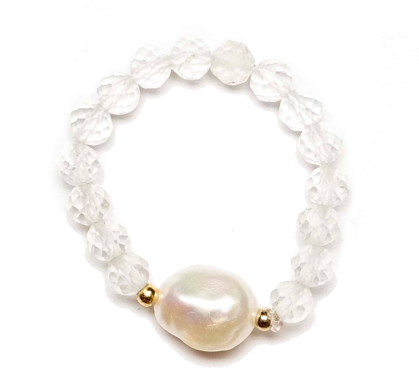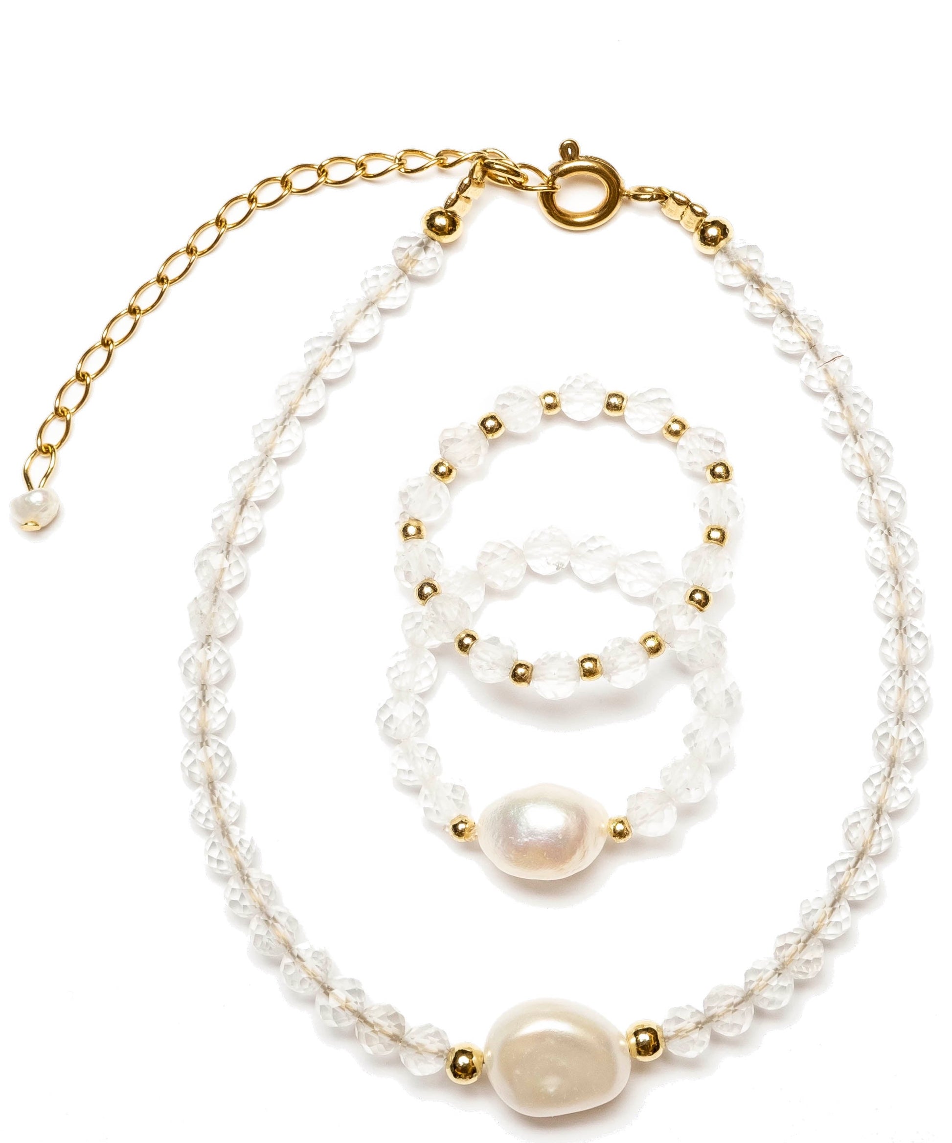 Made of: white crystals, freshwater pearl & 18k gold-plated beads